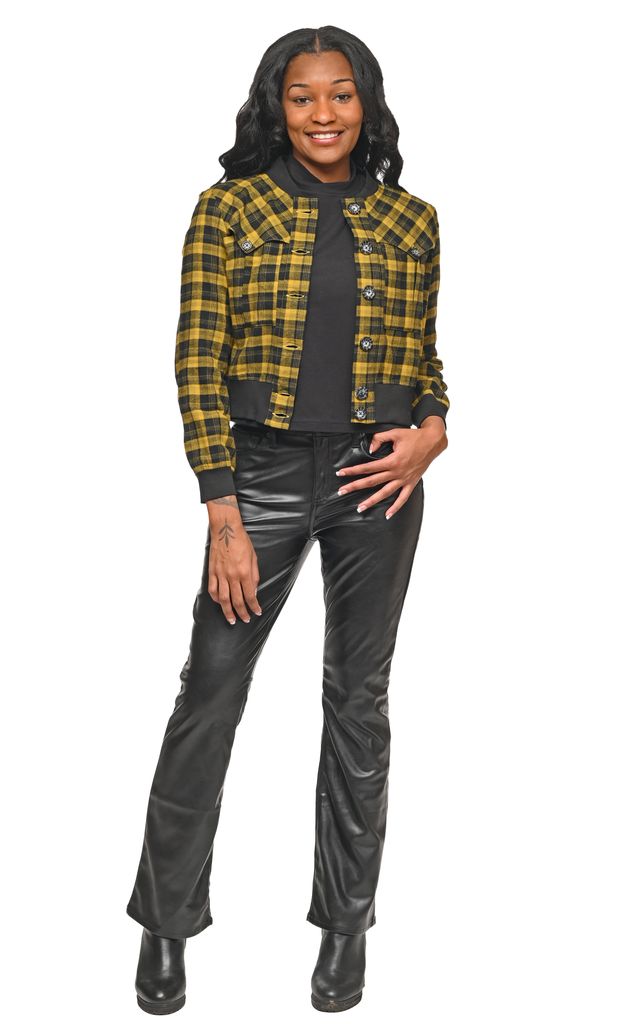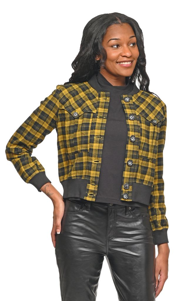 Wrap yourself in cozy sophistication with the Bobbi Bomber Jacket, a modern twist on the classic bomber silhouette, crafted from soft 100% cotton flannel.