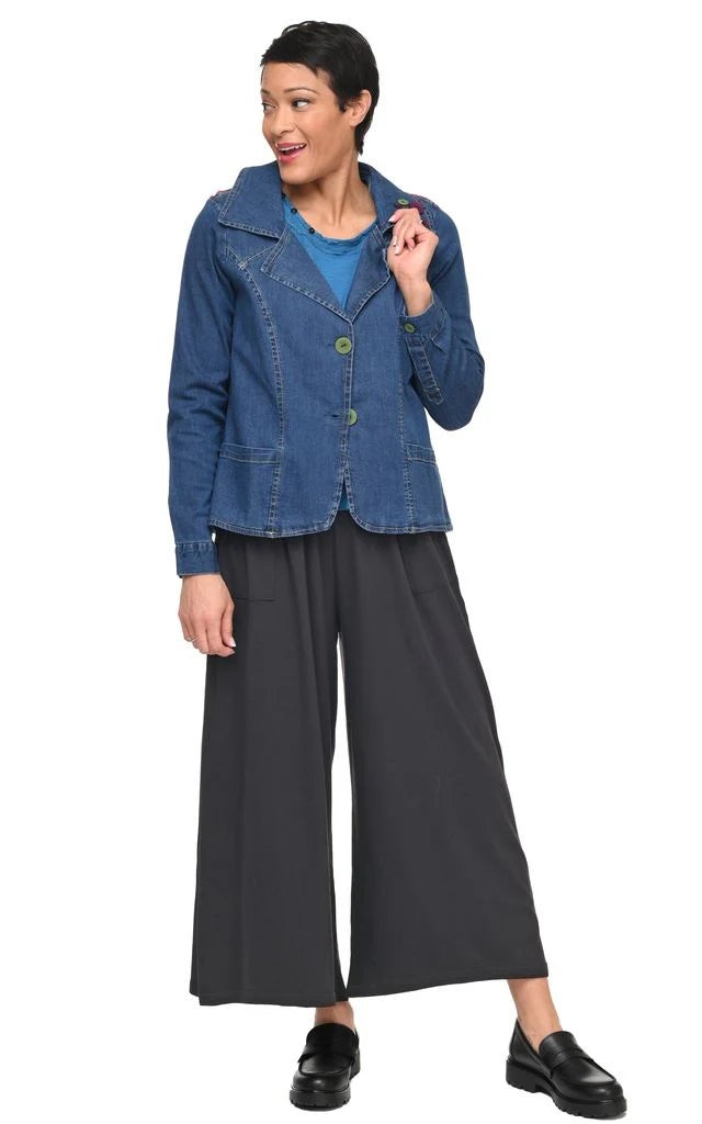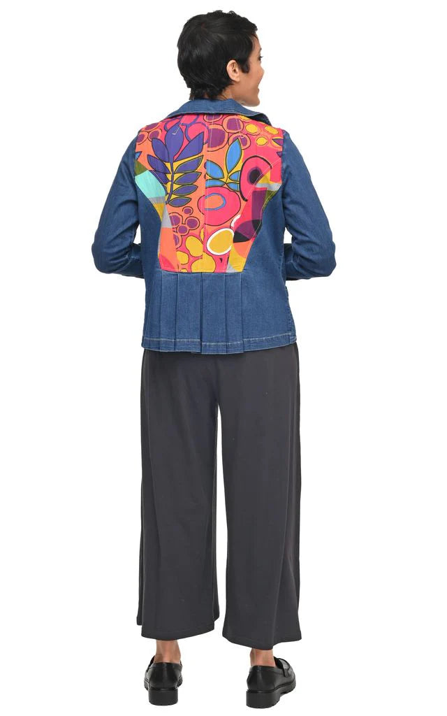 Coachella Jacket is crafted from premium denim, this jacket features a large two-part collar and back pleats for a unique and sophisticated look. Front pockets and detailed stitching add a touch of functional elegance, while cute button details on the collar complete the look.