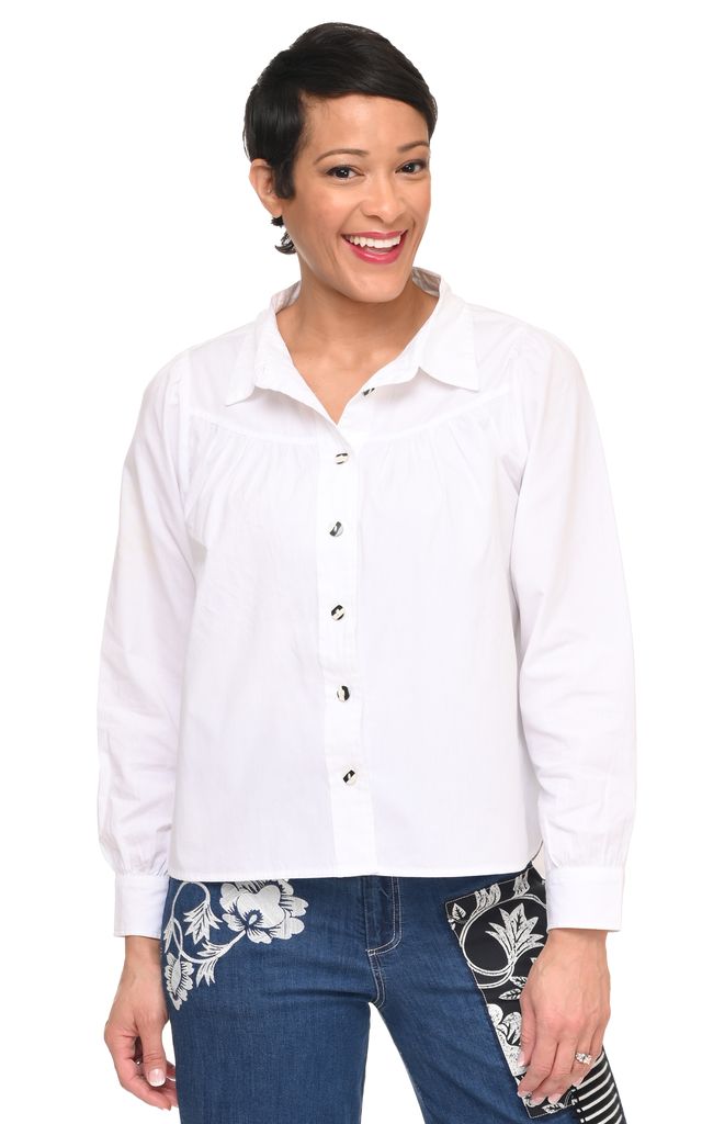 Tulip Clothing Sadie Blouse in White w/ White Buttons