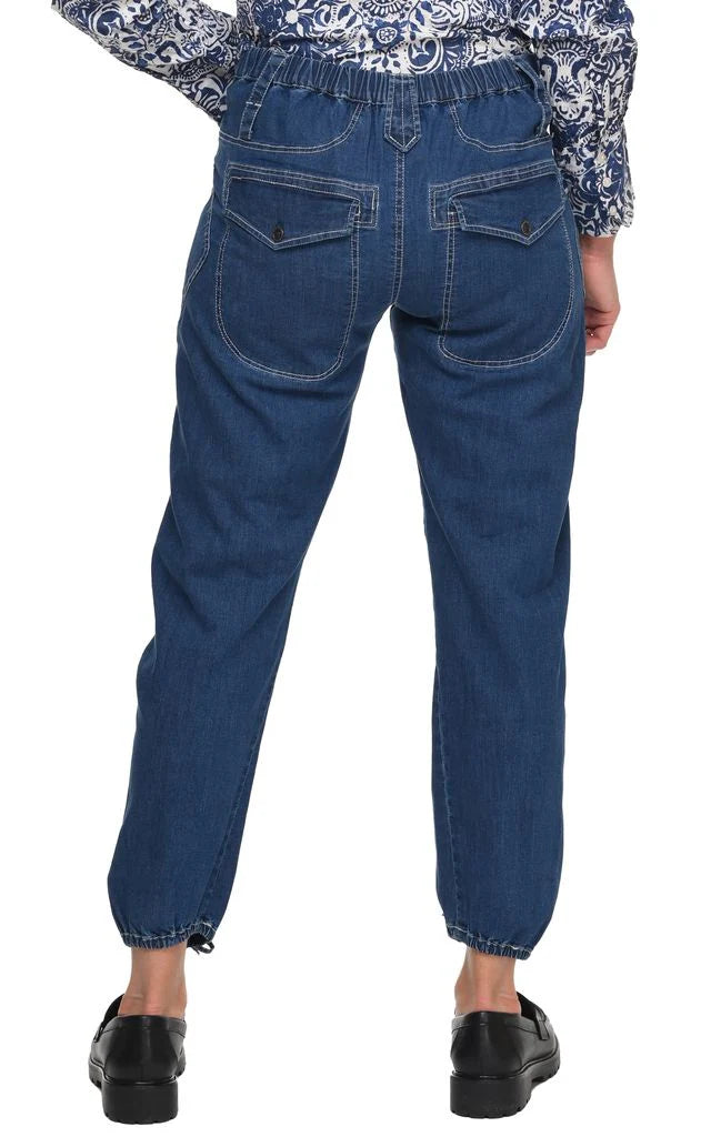 Bexley Pant in Denim with a flat front and elastic back design, this medium rise pant offers both comfort and style. Featuring front and back pockets, it's the perfect blend of functionality and elegance. Elevate your wardrobe with this exclusive piece.