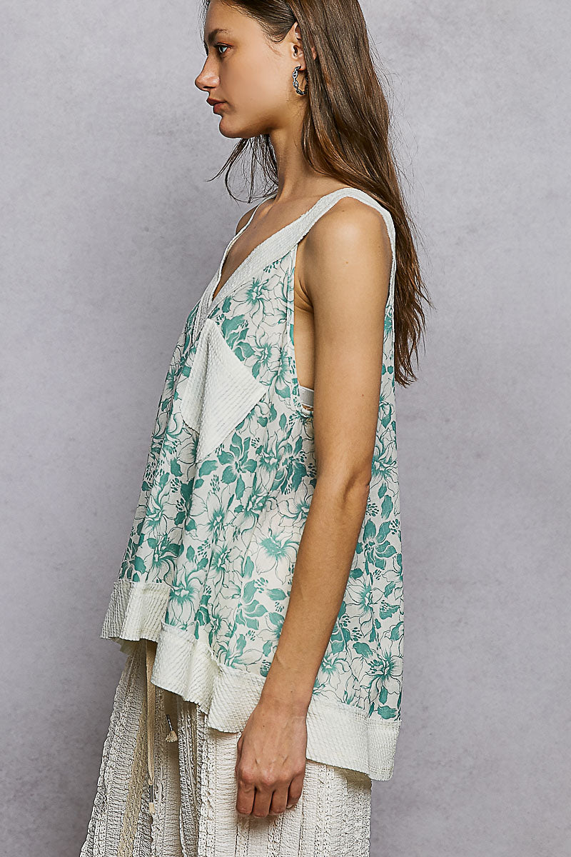 POL Floral V-Neck Tank with Front Pocket