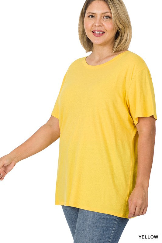 Zenana Plus Size Boyfriend Cotton Womens Round Neck Tee in Yellow