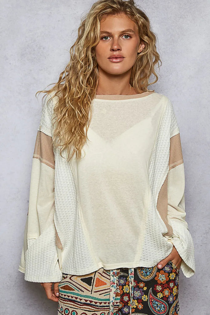 POL Clothing Contrast Long Sleeve Ribbed Womens Top Eyelet Patch