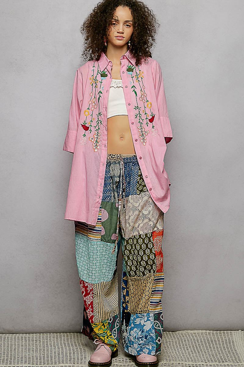 The half sleeve shirt top is crafted from cotton and features beautiful trailing embroidery for a touch of sophistication. The top undergoes a normal washing process, ensuring easy care and maintenance. The solid color lends a classic and versatile look, while the bold cuffs accent add a modern twist to the design. Perfect for adding a stylish flair to your ensemble, this top can be dressed up or down for various occasions. Pair it with tailored pants for a chic office look or with jeans for a casual weekend outfit.