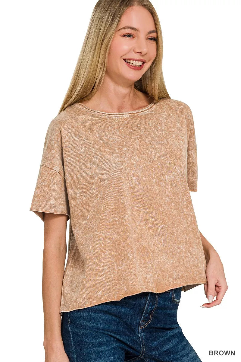 Zenana Halo Washed Cotton Womens Short Sleeve Top