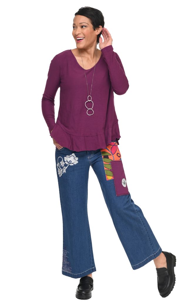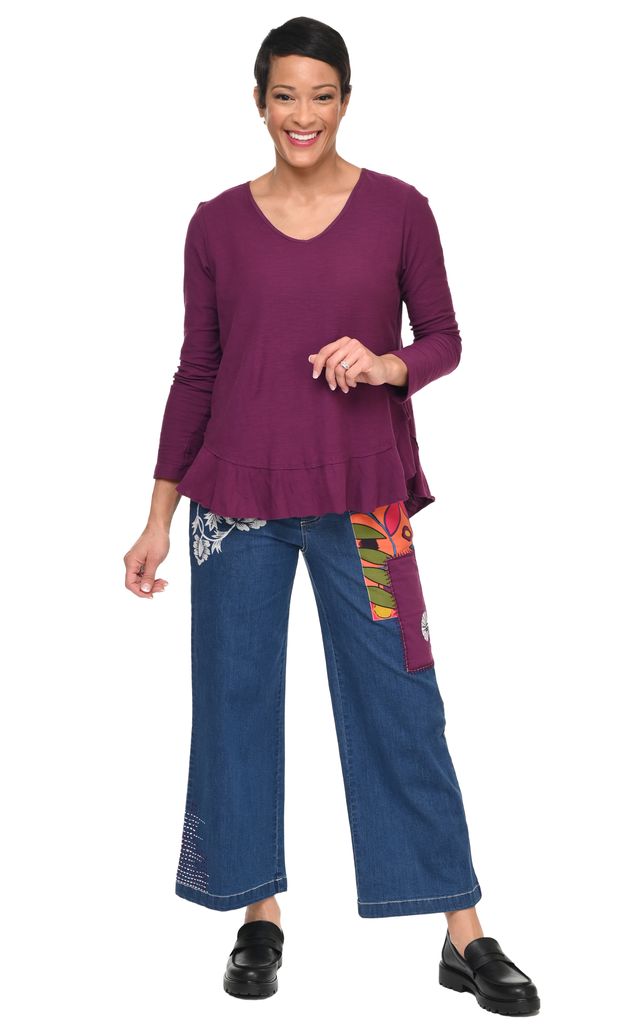 Elevate your wardrobe with our luxurious Jolie Top. This top exudes sophistication with its long sleeves, scooped V-neck, and elegant bottom ruffles. Perfect for any occasion, it is a must-have.