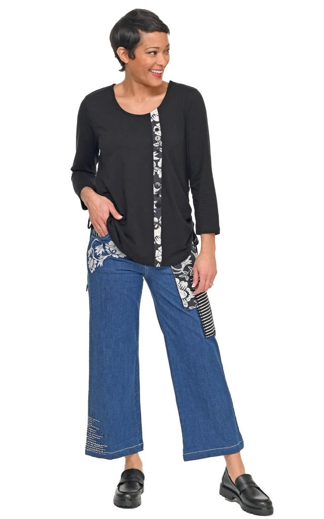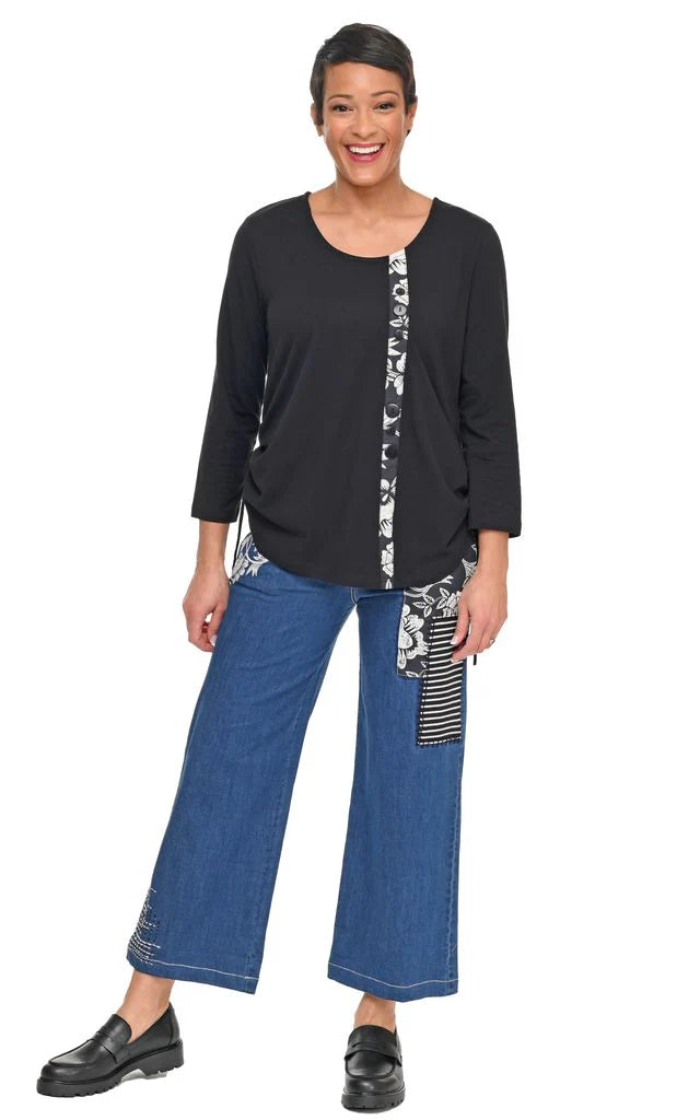 Elevate your wardrobe with our Rico Top in Black. This elegant pullover hits slightly below the hip, features bracelet length sleeves, decorative buttons, and side ties. The year-round knit ensures luxurious comfort and effortless style.